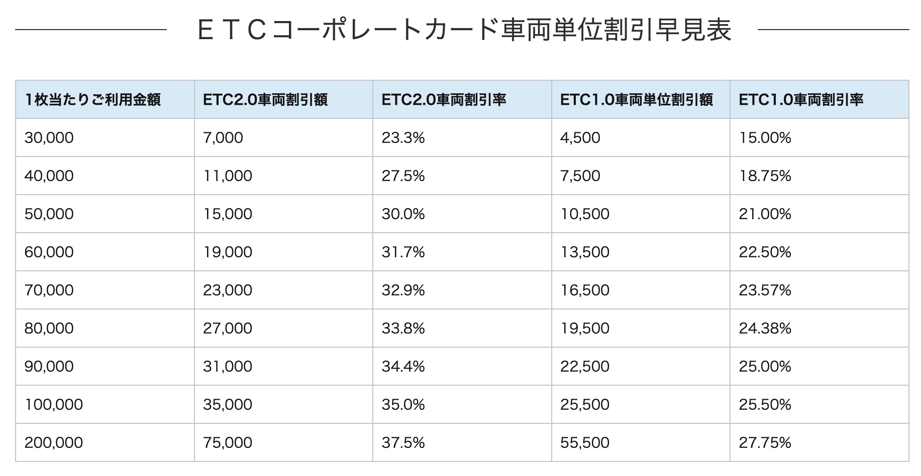 ETCコーポレートカードは、NEXCO(東・中・西日本)が大口・多頻度利用者向けに発行するカードです。利用額に応じた高い割引率が魅力です。